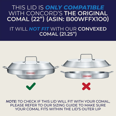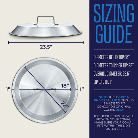 - IMPORTANT: This is NOT a universal lid, this lid is made to fit Concord's Original Comal ONLY (will NOT fit Concord's convexed comal)